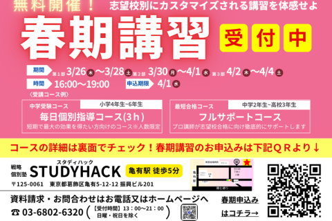スタディハックの春期講習を無料で体験していただけます!